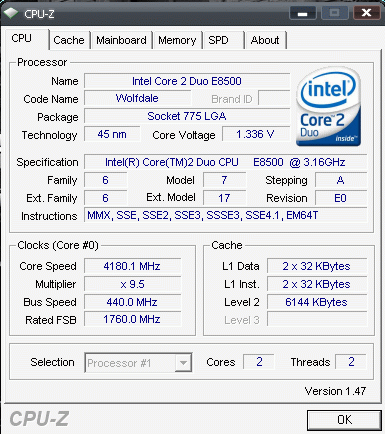 Результат разгона Intel Core 2 Duo (Wolfdale)