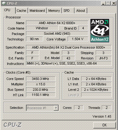| Процессор (ядро) | AMD Athlon 64 X2 (Windsor) |