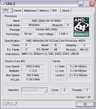 Результат разгона AMD Athlon 64 X2 (Brisbane)