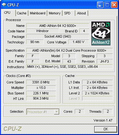 Результат разгона AMD Athlon 64 X2 (Windsor)