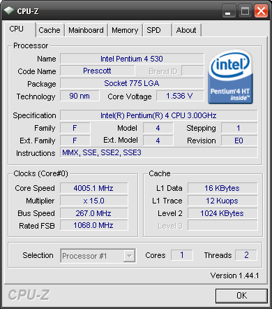Результат разгона Intel Pentium 4 (Prescott)