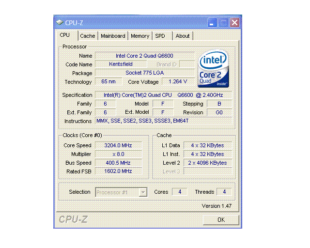 Результат разгона Intel Core 2 Quad (Kentsfield)