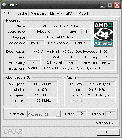 Результат разгона AMD Athlon 64 X2 (Brisbane)
