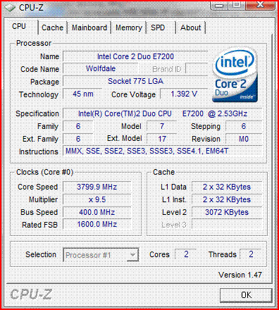 Результат разгона Intel Core 2 Duo (Wolfdale)