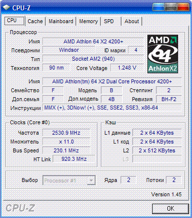 | Процессор (ядро) | AMD Athlon 64 X2 (Windsor) |