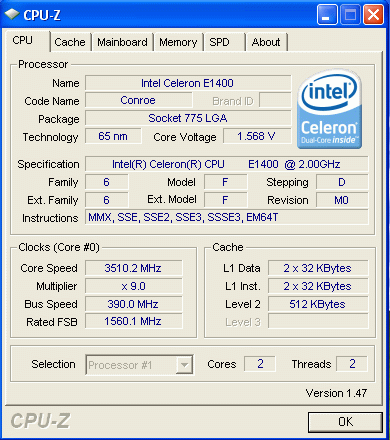 Результат разгона Intel Celeron (Conroe-512)