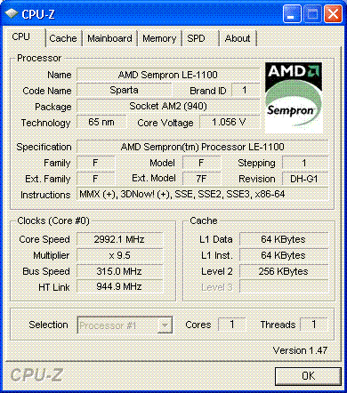 Результат разгона AMD Sempron (Sparta)