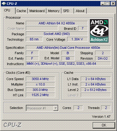 Результат разгона AMD Athlon 64 X2 (Brisbane)