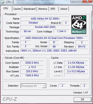 | Процессор (ядро) | AMD Athlon 64 X2 (Windsor) |