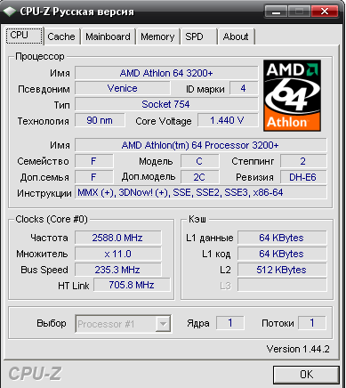 | Процессор (ядро) | AMD Athlon 64 (Venice) |