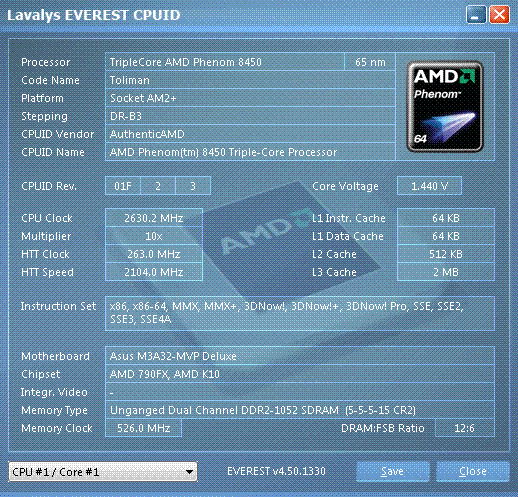 | Процессор (ядро) | AMD Phenom X3 (Toliman) |