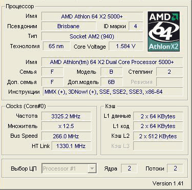 | Процессор (ядро) | AMD Athlon 64 X2 (Brisbane) |