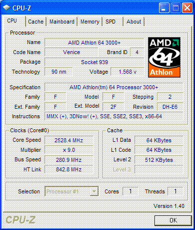 | Процессор (ядро) | AMD Athlon 64 (Venice) |