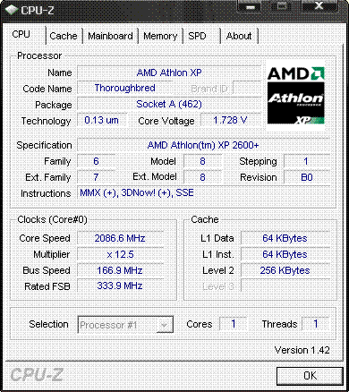 | Процессор (ядро) | AMD Athlon XP (Thoroughbred) |