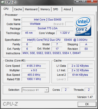 Результат разгона Intel Core 2 Duo (Wolfdale)