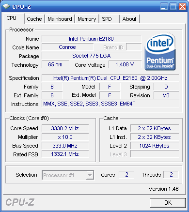 Это не предел, но дальше не гнал. Память DDR II 667 работает синхронно. На всякий случай везде поднял напругу на 0.1v