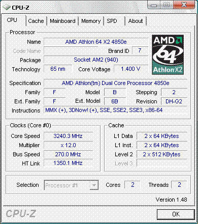 Результат разгона AMD Athlon 64 X2 (Brisbane)