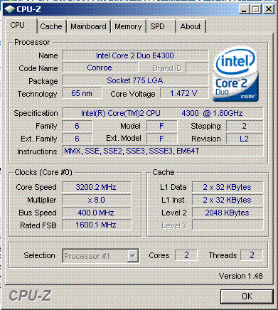 Результат разгона Intel Core 2 Duo (Conroe-2M)