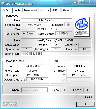 | Процессор (ядро) | Intel Celeron (Northwood-128) |