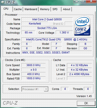 | Процессор (ядро) | Intel Core 2 Quad (Kentsfield) |