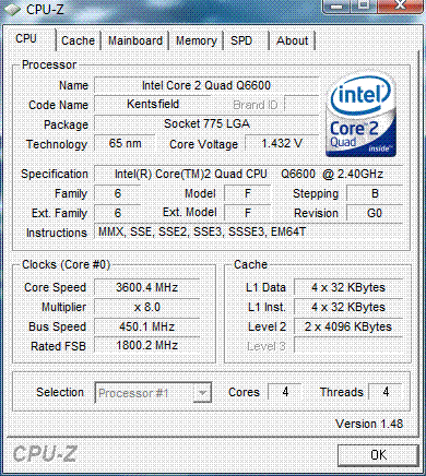 Результат разгона Intel Core 2 Quad (Kentsfield)