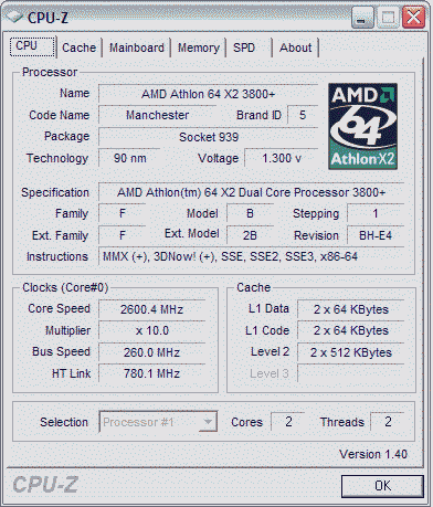 | Процессор (ядро) | AMD Athlon 64 X2 (Manchester) |