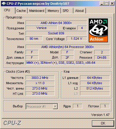 | Процессор (ядро) | AMD Athlon 64 (Venice) |