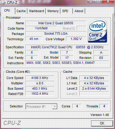 Результат разгона Intel Core 2 Quad (Yorkfield)
