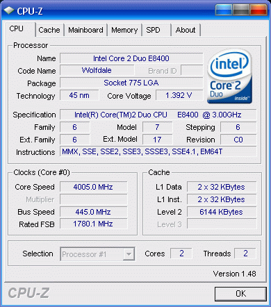 Результат разгона Intel Core 2 Duo (Wolfdale)