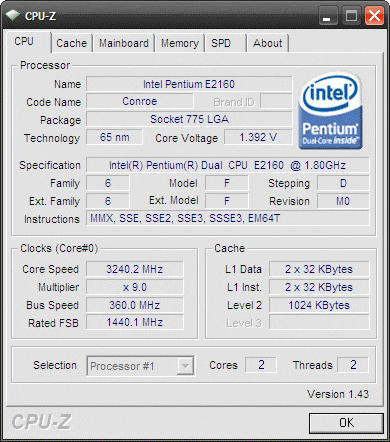 Результат разгона Intel Pentium Dual-Core (Conroe-1M)