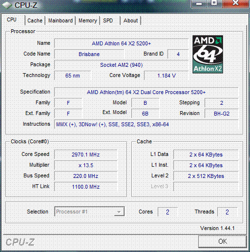 Результат разгона AMD Athlon 64 X2 (Brisbane)