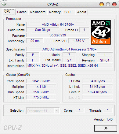 | Процессор (ядро) | AMD Athlon 64 (San Diego) |