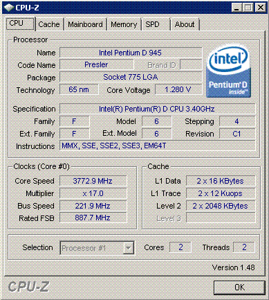 | Процессор (ядро) | Intel Pentium D (Presler) |