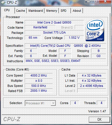 | Процессор (ядро) | Intel Core 2 Quad (Kentsfield) |