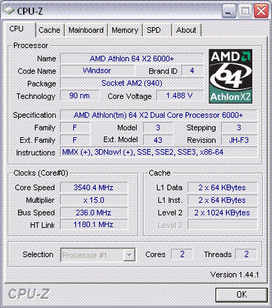 Результат разгона AMD Athlon 64 X2 (Windsor)