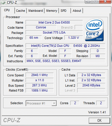 | Разгон, максимально стабильная частота (FSB x Ratio) | 2926 (266 x 11.0) |