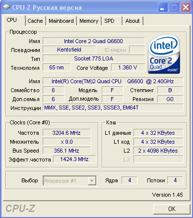| Процессор (ядро) | Intel Core 2 Quad (Kentsfield) |