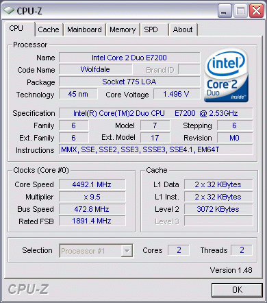 Результат разгона Intel Core 2 Duo (Wolfdale)