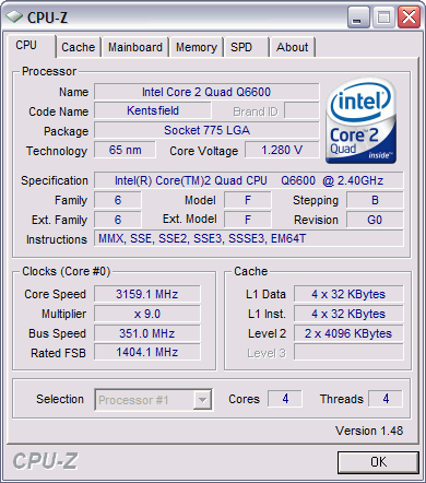 | Процессор (ядро) | Intel Core 2 Quad (Kentsfield) |