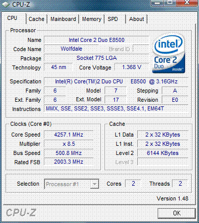 Результат разгона Intel Core 2 Duo (Wolfdale)