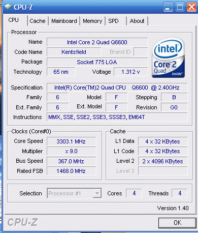 Результат разгона Intel Core 2 Quad (Kentsfield)
