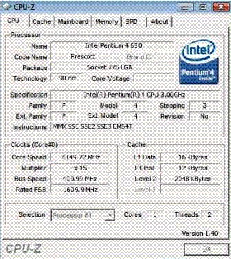 | Процессор (ядро) | Intel Pentium 4 (Prescott) |