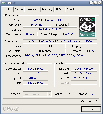 | Процессор (ядро) | AMD Athlon 64 X2 (Toledo) |