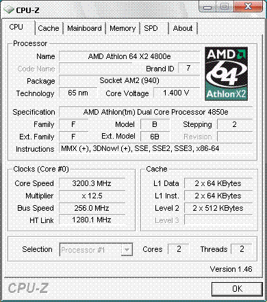 | Процессор (ядро) | AMD Athlon 64 X2 (Brisbane) |