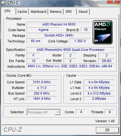 | Процессор (ядро) | AMD Phenom X4 (Agena) |