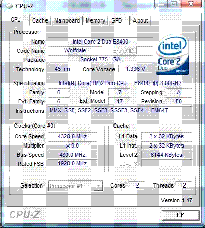 Результат разгона Intel Core 2 Duo (Wolfdale)