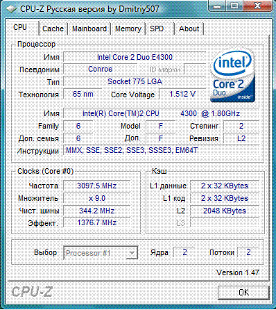 Результат разгона Intel Core 2 Duo (Conroe-2M)