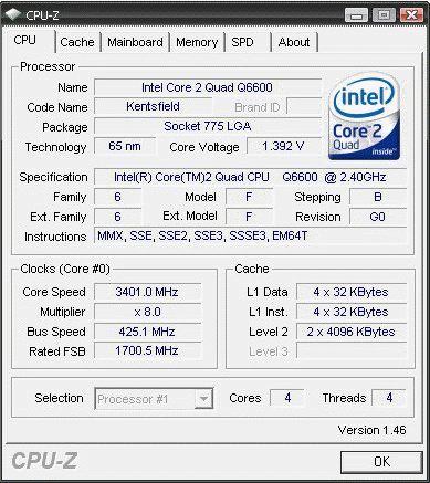 | Процессор (ядро) | Intel Core 2 Quad (Kentsfield) |