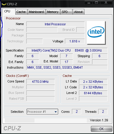 Результат разгона Intel Core 2 Duo (Wolfdale)