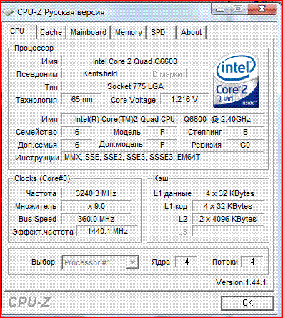 | Процессор (ядро) | Intel Core 2 Quad (Kentsfield) |